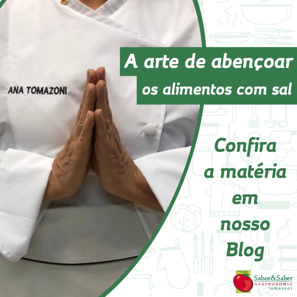 Como educadora alimentar e chef de cozinha tenho por hábito há muitos e muitos anos abençoar o alimento que estou preparando na hora em que coloco o sal. É um ritual, principalmente ao dar aulas de arte culinária ensinando alunos no seu dia a dia, que sempre me perguntam “que quantidade de sal colocar na receita?”. No meu ritual coloco o sal com a ponta dos dedos (fazendo um giro), num gesto de vibração, sentimento e ritmo de ações positivas e de benções para o alimento ficar saboroso e nutrir todos que dele vão desfrutar.