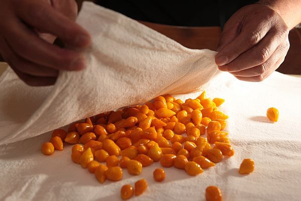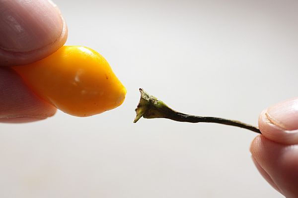 Retire os cabinhos e curta as pimentas no vinagre de álcool por 2 dias para selecionar as melhores: as ruins escurecem e boiam.
