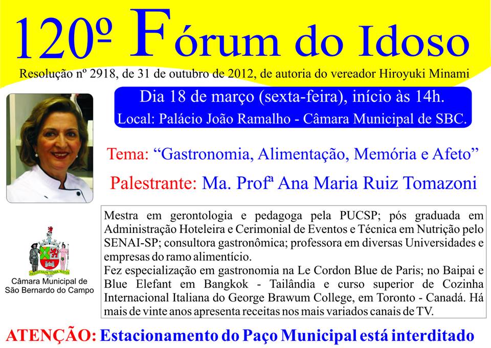 120º Fórum do Idoso com Dra. Ana Maria Ruiz Tomazoni “Gastronomia, alimento, memória e afeto”. 120º Fórum do Idoso com Dra. Ana Maria Ruiz Tomazoni “Gastronomia, alimento, memória e afeto”. Leia Mais »