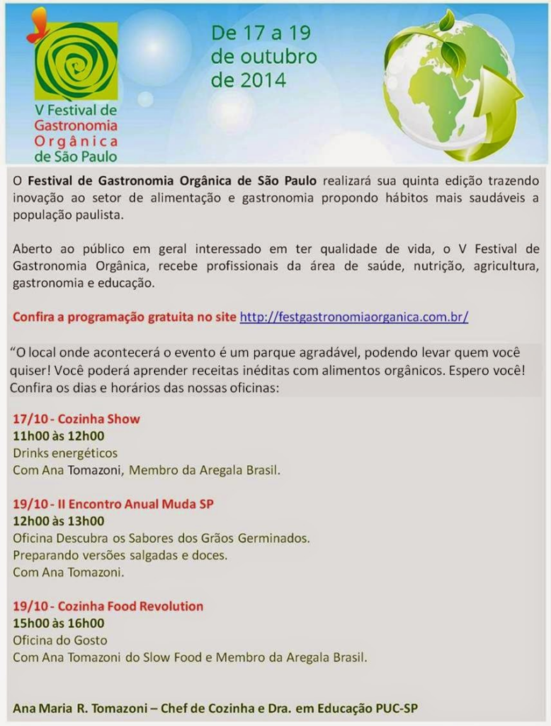 CONVITE DO V FESTIVAL DA GASTRONOMIA ORGÂNICA Deixe um comentário / Blog / Por saboresabergastronomia