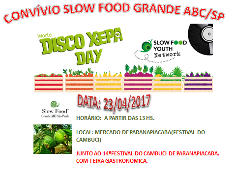 O DISCO XEPA, Paranapiacaba,do Convívio Slow Food Grande ABC/SP, aconteceu em 23/04/2017, durante o 14º Festival do Cambuci, reunindo Chefs, alunos de gastronomia, colaboradores, amigos e membros do Convívio associados ao Slow Food Brasil.