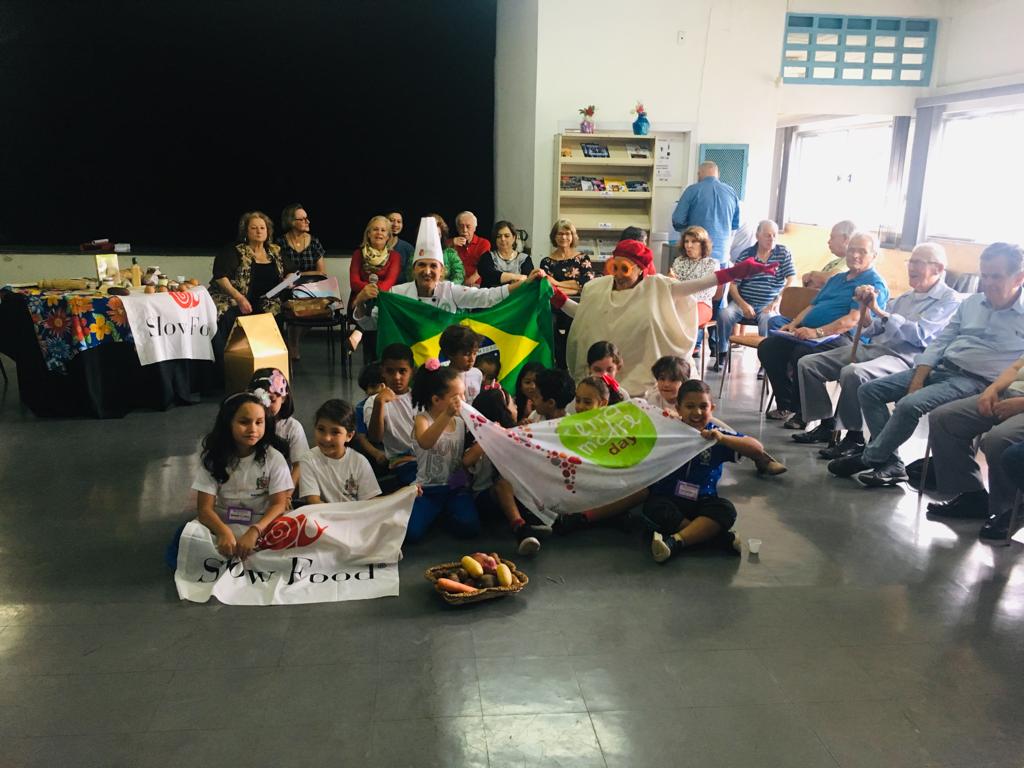 No dia 28, ultima quarta feira do mês de Novembro participei como Educadora Alimentar, Chef de Cozinha, pesquisadora e líder do Movimento Slow Food Brasil, com Convivio Slow Food Grande ABC SP, de encontro intergeracional com grupo de idosos frequentadores do Centro da Memória de SBCampo e crianças da escola Emeb Rui Barbosa. Trabalhamos uma interação de perguntas curiosas, para os idosos, sobre o que existia no quintal deles quando crianças e jovens. Para ter uma ideia tinha um vovô de 105 anos, Sr. João Gava, frequentador do centro de memoria, super lucido e falante, encantou a todos; contou do quintal com galinhas, do leite entregue nas casas, das frutas e inclusive o cambuci que servimos degustação para as crianças e todos os presentes.