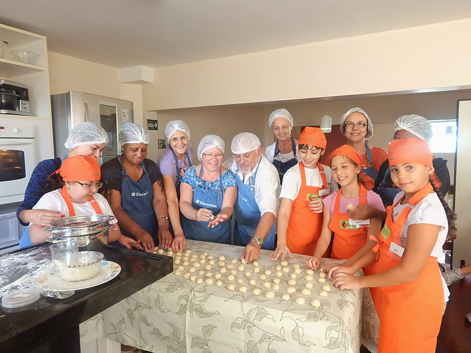 Nesta ação, tivemos alunos da FATI – Faculdade Aberta da Terceira Idade de São Bernardo do Campo e crianças (alunos) do curso para crianças e adolescentes (6 a 10 anos) da escola Sabor e Saber Gastronomia, em São Bernardo. Essa ação aconteceu no mês de abril, na própria escola.