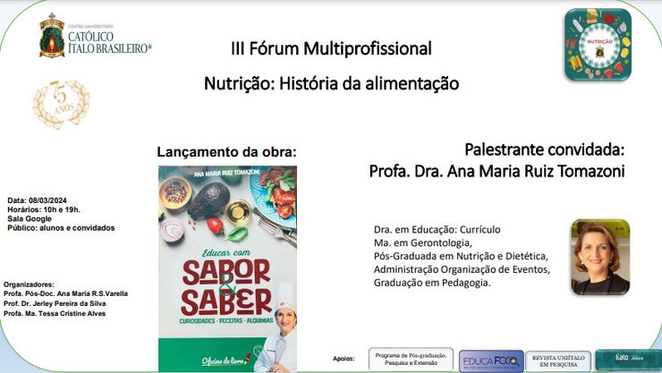 III Fórum Multiprofissional na Universidade Católica Uni Italo “ Dia da Mulher celebrado em duas palestras e lançamento do meu mais recente livro interativo Educar com Sabor e Saber” em lugar que AMO a Universidade, em busca de novos olhares e saberes! Gratidão pelo convite Italo Junior na presença do Magnífico Reitor Professor Dr. Marcos Antônio Gagliardi Cascino, vice reitor Dr. Jerley e Dra. Ana Maria Varella momentos de semear e aprender sempre…