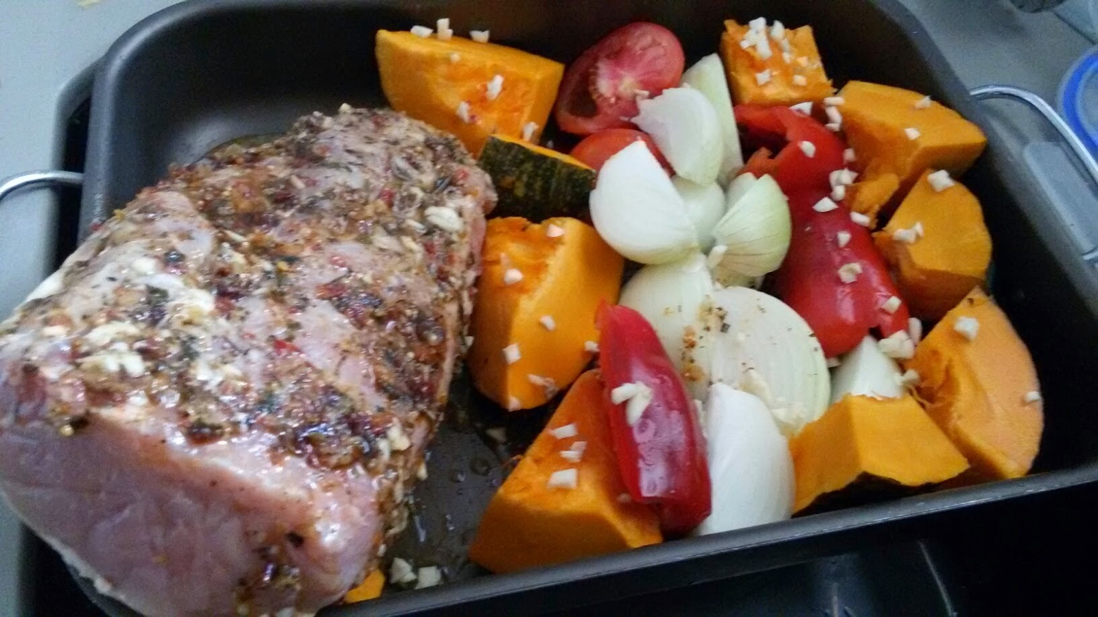 Ingredientes: – 1 ½ kg Lombo – Suco de 2 limões – 1 xícara de vinho branco seco – 1 ½ xícara de ervas picadas: alecrim, salsa, salvia, hortelã , outras de sua preferência – 3 dentes de alho picados – Temperos desidratados: pimenta do reino, pimenta dedo de moça, noz moscada, pimenta síria e outros de sua preferência – Ervas italianas: manjericão, orégano, etc – Sal – 1 colher de sopa de farinha de trigo para O MOLHO FINAL – Legumes para assarem junto: Abobora, pimentões, erva doce em cabeça, cebola, cenoura, salsão ou outros de sua preferencia |