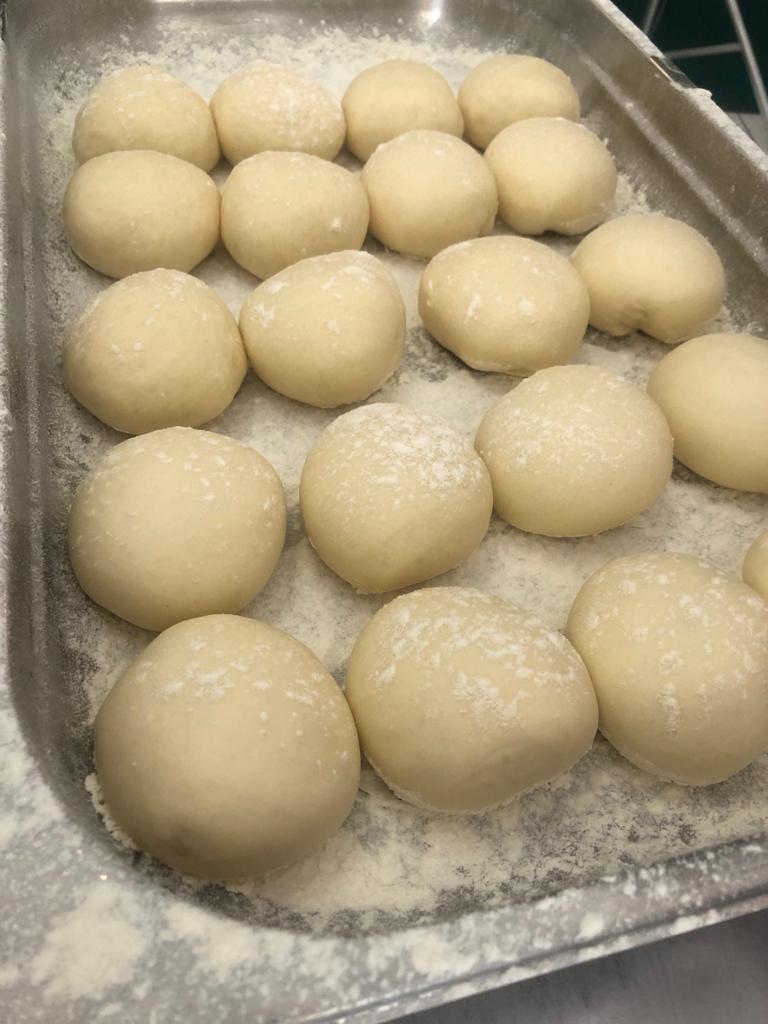 8. Modele boleando, em seguida, arrume os pães na assadeira e leve para fermentar em local adequado;
