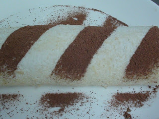 6. Depois de fria, desenrole e recheie de doce de leite ou goiabada, enrole novamente.