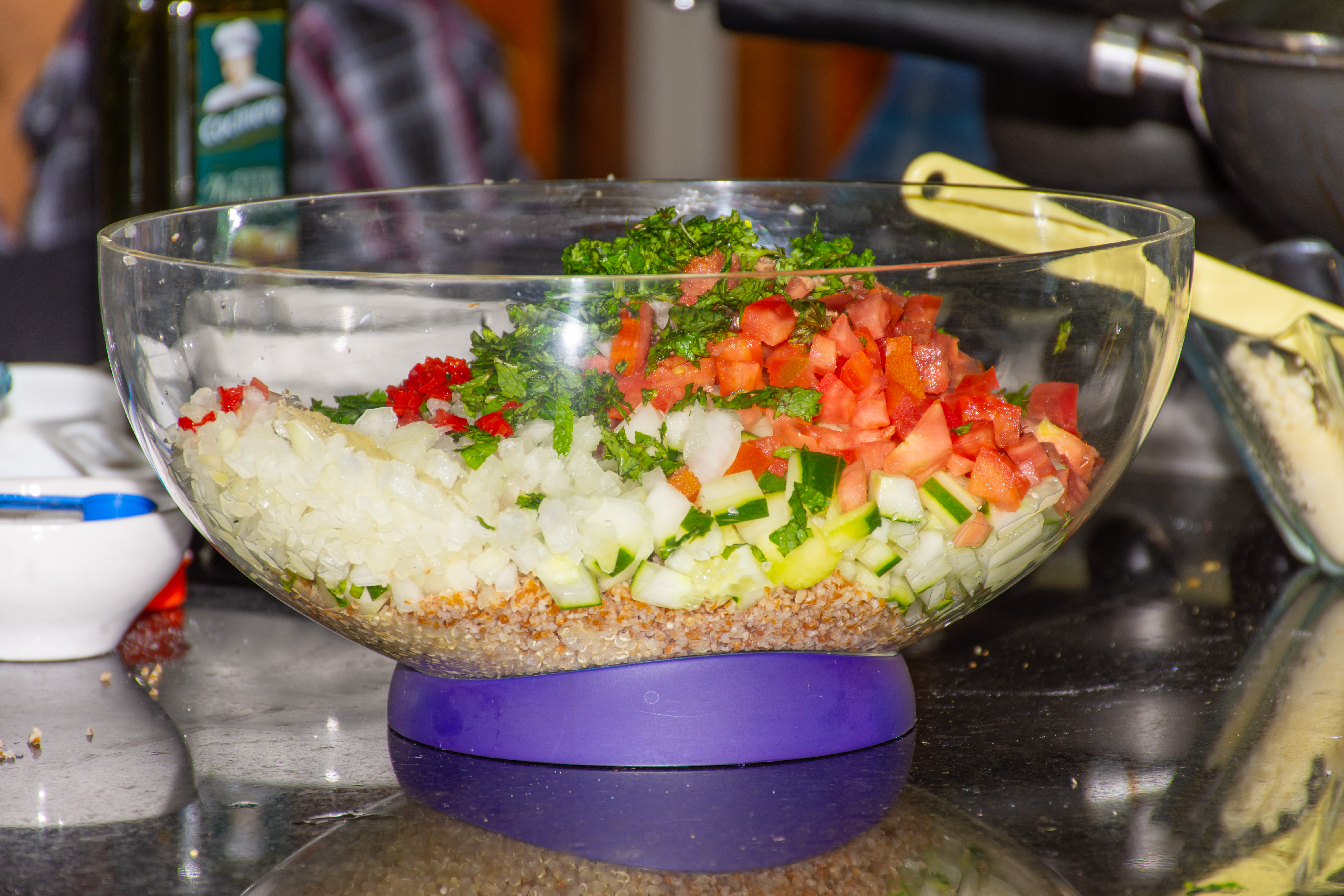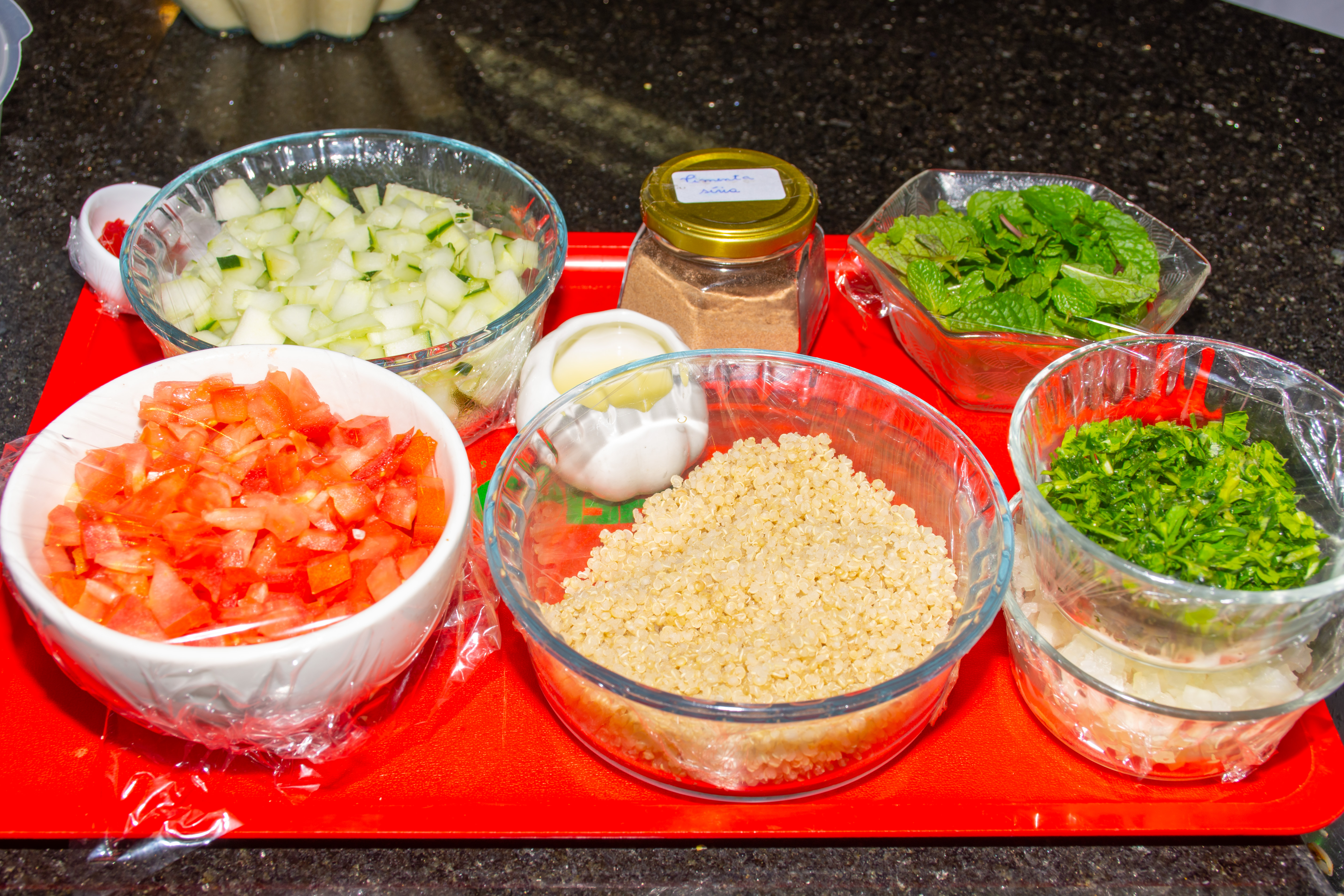 5. Em um bowl misture todos os ingredientes restantes, inclusive a quinoa e trigo (frios).