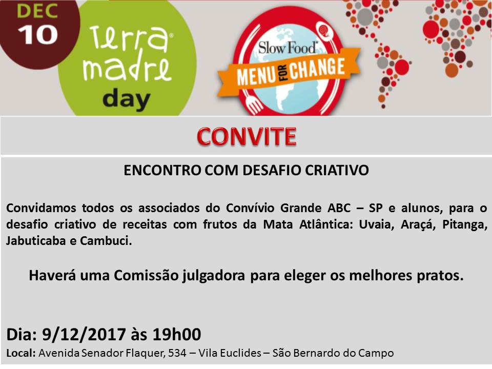Neste ano, o Convívio Grande ABC – São Paulo, comemorará no dia 9/12 às 19h00 com o Desafio Criativo de receitas com os frutos da Mata Atlântica. Venha participar, esperamos por você!